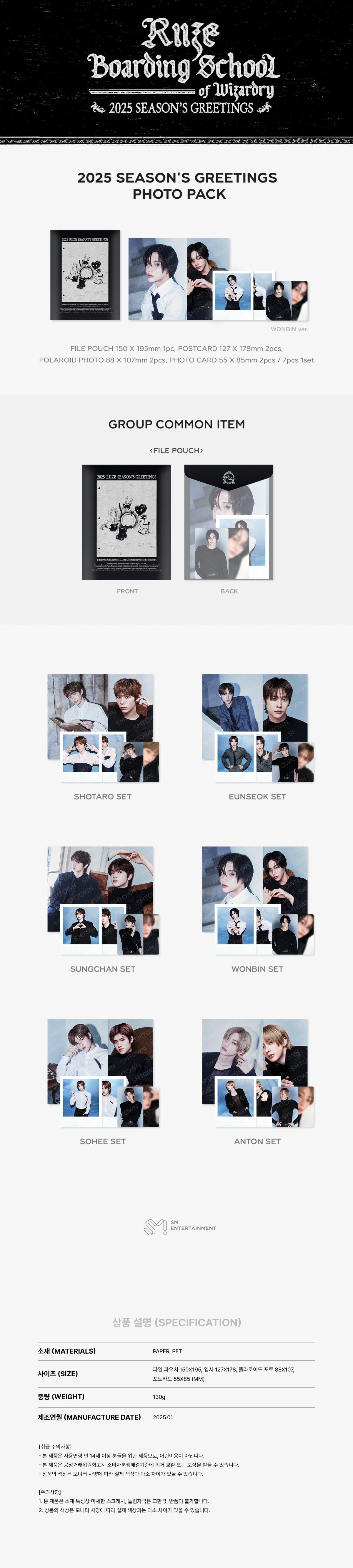 2025 SM ARTIST SEASON’S GREETINGS OFFICIAL MERCH PHOTO PACK (RIIZE Ver.)