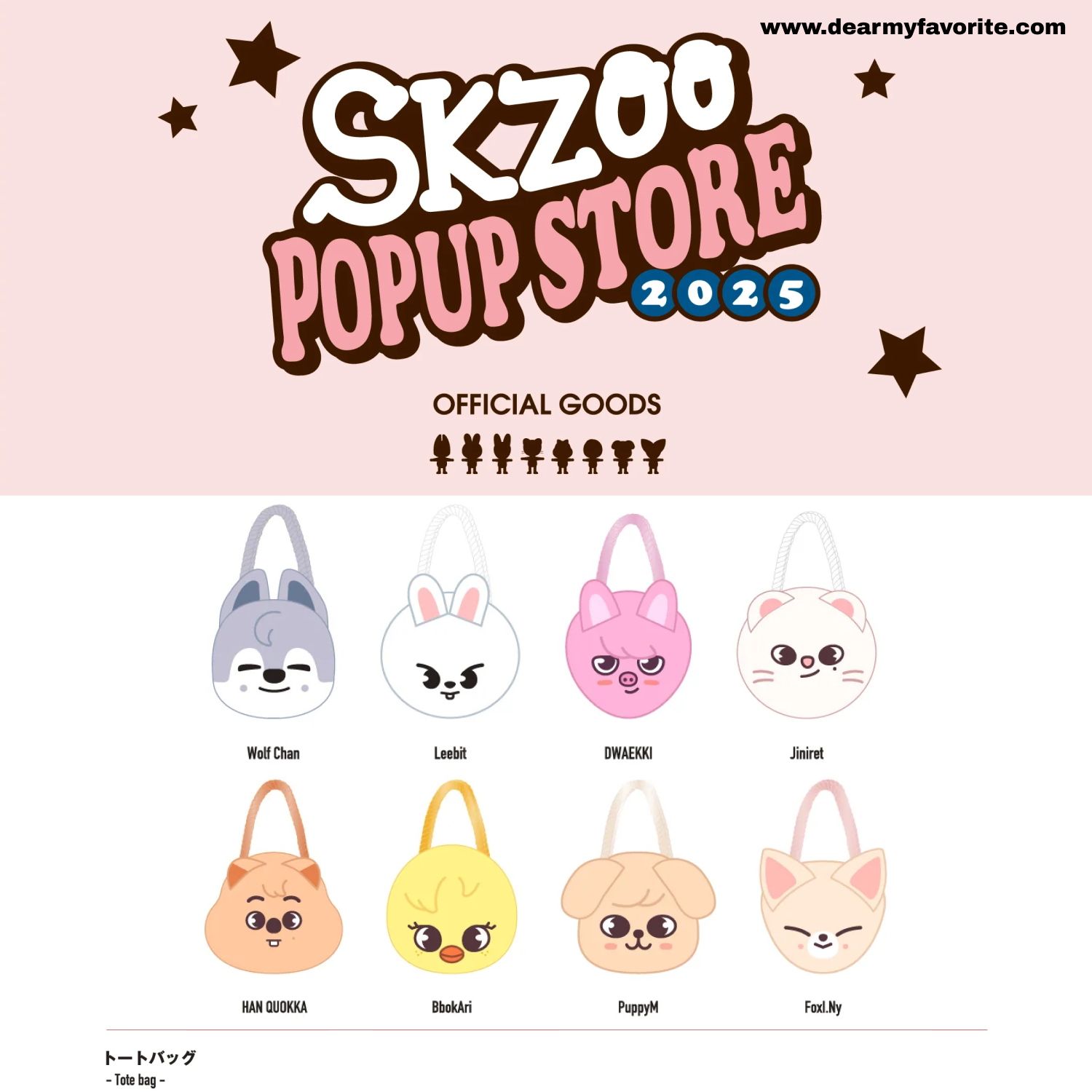 ![[PRE-ORDER EVENT] Stray Kids JAPAN SKZOO POP UP STORE 2025 OFFICIAL MD TOTE BAG](http://dearmyfavorite.com/cdn/shop/files/skzoo2025popup4.png?v=1737987347&width=1445)